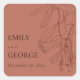 PEGATINA CUADRADA RETRO TERRACOTTA RUST LINE DRAWING FLORAL BODA