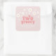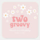 Pegatina Cuadrada Retro Two Groovy daisy boho floral segundo cumplea