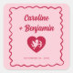 Hand-drawn, bold, and funky wedding stickers that blends vintage charm with modern flair. The design features a playful pink background framed by a wavy red outline, giving it a lively, retro vibe. The typography is fun, funky, and modern, with a nostalgic twist that makes the text pop in vibrant red. At the center, a heart motif with a cupid inside adds a whimsical, romantic touch, perfectly balancing elegance with cheeky charm. The overall look is funky yet sophisticated, with a hand-drawn aesthetic that feels both stylish and heartfelt—ideal for couples who want their wedding stationery to radiate personality, joy, and retro-modern love.