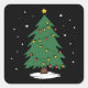 Pegatina Cuadrada Retro Xmas Merry Christmas Tree Lights