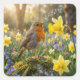 Pegatina Cuadrada Robin Singing Into a Daffodil