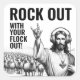 Pegatina Cuadrada Rock Out with your Flock Out! - Funny Jesus Meme