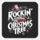 Pegatina Cuadrada Rockin' Christmas Tree Text Drummer