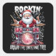 Pegatina Cuadrada Rockin' Santa Drummer Christmas Tree