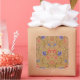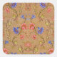Pegatina Cuadrada Rojo Imperial y Dorado Entrelazado Floral en Seda