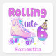 Pegatina Cuadrada Rolling Into 6 - Cute Purple Roller Skate Cumpleañ