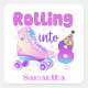 Este diseño lindo y morado incluye la frase "Rolling Into 8". Es perfecto para la celebración de cumpleaños de un patinador de ruedas.