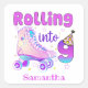 Este diseño lindo y morado incluye la frase "Rolling Into 9". Es perfecto para la celebración de cumpleaños de un patinador de ruedas.