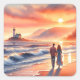 Pegatina Cuadrada Romantic Coastal Sunset Lighthouse Walk