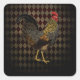 un bonito gallo sobre un arlequín negro y blanco o un patrón de diamante