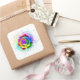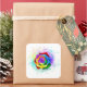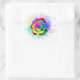 Rosa grande y floreciente con pétalos de arco iris sobre fondo blanco, pintado con salpicaduras de pintura colorida y brillante. 3.ª