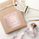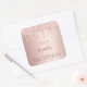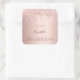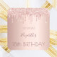 Un pegatina para una fiesta de cumpleaños glamurosa y femenina. Un falso fondo metálico rosa dorado con un elegante purpurina rosa de oro goteo, pinta goteo. El texto: El nombre está escrito en oro rosa oscuro con un gran guión de estilo moderno con letras a mano. Plantilla de nombre, edad 18 y fecha.