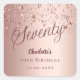 Un pegatina moderno y elegante para una fiesta de cumpleaños número 70. Fondo de gradiente dorado Rosa y la palabra Setenty escrito con letras de guiones grandes y elegantes en oro rosa oscuro. Decorado con estrellas de color oro rosa. Personalice y agregue un nombre y una fecha.