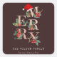 Pegatina Cuadrada Rosa marrón Oro Verde Rojo Feliz Navidad Foliage