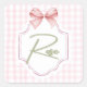 Pegatina Cuadrada Rosa personalizada Niña Nursery Bow&Gingham