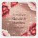 Pegatina Cuadrada Rosa Purpurina de oro con Boda de rosas rojas