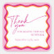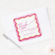 Pegatina Cuadrada Rosa retro y borde ondulado Naranja gracias