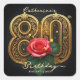 Pegatina Cuadrada Rosa Roja Ornata y Filigrana Dorada Cumpleaños 80