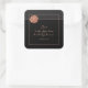 Pegatina Cuadrada Rosa romántico Purpurina de oro Boda Monograma