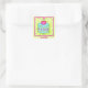 Pegatina Cuadrada Rosa turquesa Feliz cumpleaños Monograma