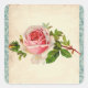 Un bonito rosa de ilustracion victoriano con una tarjeta de visita está instalado en un fondo envejecido con un borde de damasco de agua o turquesa. Un bonito y chic diseño vintage para la chica femenina, elegante y elegante.
