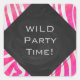 Pegatina Cuadrada Rosa y blanco caluroso de cebra con monograma