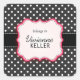 El negro con el fondo blanco de los lunares que ofrece una etiqueta rosada brillante del vintage escrita "pertenece a" y nombre del modelo en diversas fuentes (estilo de fuente del cambio haciendo clic en el personalizar anaranjado él botón).