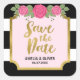 Esta moda Save the Date pegatinas cuadrados presentan un falso borde dorado, rayas blancas y negras y algunas rosas rosas rosas rosas. Úsalo para sellar los sobres de fecha guardados o para la decoración. Compruebe la coincidencia guardar la tarjeta de fecha en mi tienda aquí -> http://www.zazzle.com/black_white_stripes_roses_wedding_save_the_date_card-256251464667911838?rf=238364477188679314 Personalízala con sus detalles reemplazando el texto del marcador de posición. Para obtener más opciones, haga clic en el botón "Personalizar". *Tenga en cuenta que la marca de agua Zazzle que aparece en la vista previa del zoom NO aparecerá en el producto impreso final. © Rosewood y Citrus
