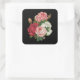 Pegatina Cuadrada Rosas de repollo de época - fondo negro