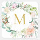 Pegatina Cuadrada Rosas del Monograma Dorado Garland Floral