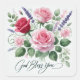 Pegatina Cuadrada Rosas Rosadas Dios te Bendiga Religioso