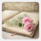 Pegatina Cuadrada Rosas Rosadas En Viejos Libros