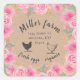 Pegatina Cuadrada rosas rosas rosas rosas hojas de oro de granja de
