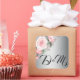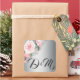 Un magnífico pegatina de papel de boda plateado y rosa (o se puede usar para cualquier otro propósito si se desea) con un bonito ramo de rosas rosas rosas rosas rosas en la esquina superior, todo en una base metálica plateada muy lujosa y glamurosa. Los monogramas de la novia y el novio se pueden cambiar fácilmente si se Personaliza, arriba.