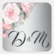 Pegatina Cuadrada Rosas rosas rosas y Boda plateado