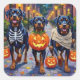 Pegatina Cuadrada Rottweiler Trick-or-Treating In Halloween Costumes