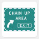Una señal de carretera que indica que el camino por delante es un área de cadena. Este diseño parece realmente efectivo en estos Pegatinas