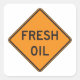 Señal de tránsito que dice aceite fresco en un fondo naranja. Este diseño parece realmente efectivo para estos Pegatinas