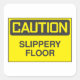 Un signo de suelo resbaladizo de precaución en amarillo. Este diseño parece realmente efectivo para estos Pegatinas