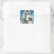 Pegatina Cuadrada Rough Collie con Navidades Snowman