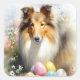 Pegatina Cuadrada Rough Collie Dog with Easter Eggs Holiday