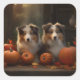 Pegatina Cuadrada Rough Collie Puppy Calabaza deslumbrante otoño