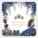 Pegatina Cuadrada Royal Blue Golden Tiara Floral Quinceañera