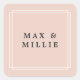 Los pegatinas clásicos y elegantes de su boutique o de negocios cuentan con un lujoso fondo rosa milenario con un delgado borde geométrico blanco y letras clásicas en un rico carbón vegetal negro.