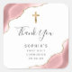Este pegatina de agradecimiento de la Primera Comunión presenta diseños de agatos de acuarela rosa rubor recortados con falsos purpurinas de oro en dos esquinas. Una cruz de Relieve metalizado falsa de oro aparece encima de las palabras "Gracias" en escritura a mano gris carbón sobre fondo blanco. Personalízalo con el nombre del invitado de honor, la ocasión y la fecha en letra de copperplate gris de carbón.