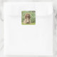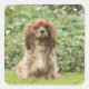 Pegatina Cuadrada Ruby Cavalier Rey Charles Spaniel en el césped