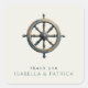 Esta elegante pegatina de boda presenta una rueda de barco bellamente ilustrada en tonos suaves de gris, marrón y dorado, evocando un clásico tema náutico. El diseño está centrado con amplio espacio negativo, lo que permite que los intrincados detalles de la rueda se destaquen de manera prominente. Debajo de la rueda, una tipografía simple pero sofisticada dice "gracias" seguido de nombres en letras mayúsculas, añadiendo un toque personal. Perfecta para expresar gratitud en su evento especial, esta pegatina combina el encanto marítimo con un mensaje sincero, lo que la convierte en una opción ideal para parejas que celebran su unión.