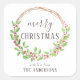 Pegatina Cuadrada Ruidosa acuarela Holly Wreath Feliz Navidad