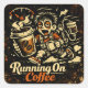 Pegatina Cuadrada Running On Coffee – Caffeinated Humor Survival