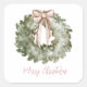 A timeless holiday accent, this rustic Christmas holiday sticker features a watercolor wreath tied with a soft burgundy bow. The elegant natural tones and detailed greenery design make it perfect for farmhouse Christmas cards. Matches beautifully with neutral, kraft, or linen papers.